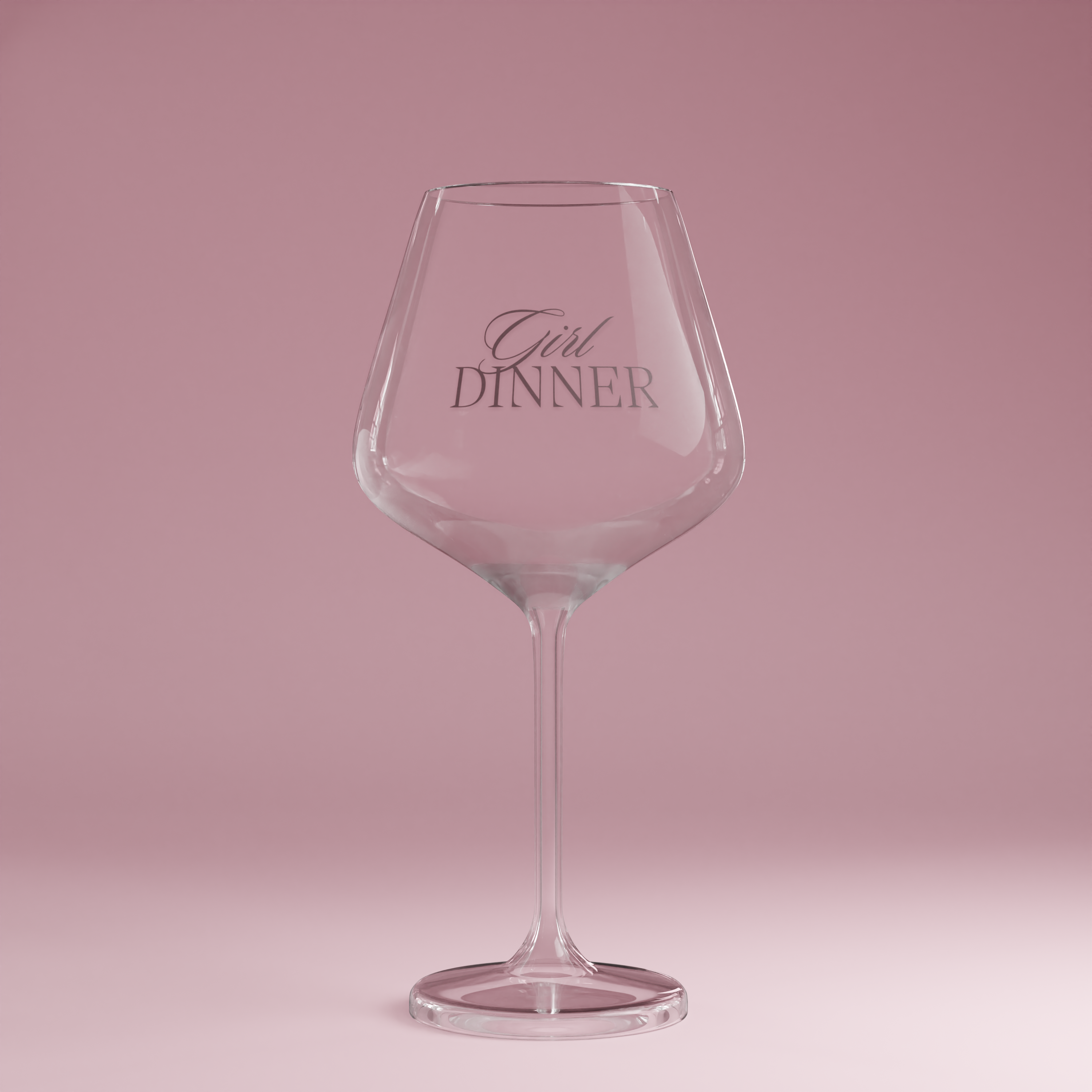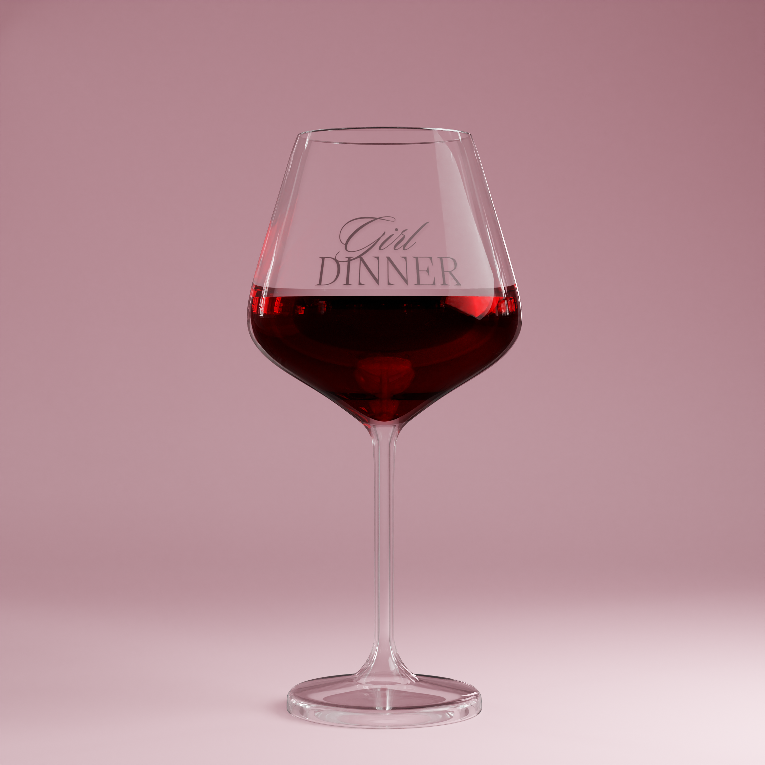 The extra large sized "Girl Dinner" wine glass is your new sidekick for all your bite-sized feasts, because why bother with a full meal when a glass of wine and random snacks hit the spot?